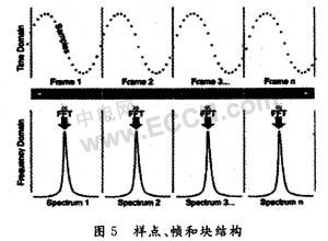 在實(shí)時(shí)頻譜儀實(shí)時(shí)測量模式下,它無縫捕獲每個(gè)塊并存儲(chǔ)在內(nèi)存中。然后它使用DSP技術(shù)進(jìn)行后期處理,分析信號(hào)的頻率、時(shí)間和調(diào)制特點(diǎn)。顯然,快速傅里葉變換是實(shí)時(shí)頻譜分析儀的核心,可以認(rèn)為這是一種新型的、快速掃描的頻譜儀。