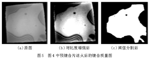 該檢測(cè)儀更具有靈活性和實(shí)用性,不但可用于同質(zhì)材料鍵合片的質(zhì)量檢測(cè),還可用于異質(zhì)材料鍵合片的檢測(cè),用于篩選適合下一步工藝研究的合適鍵合片等。同時(shí),該檢測(cè)儀結(jié)合到鍵合裝置中,可以實(shí)時(shí)觀測(cè)鍵合過(guò)程中鍵合的動(dòng)態(tài)圖像,觀察鍵合波,實(shí)時(shí)指導(dǎo)鍵合工藝。但目前已實(shí)現(xiàn)的軟件功能還很簡(jiǎn)單,只能進(jìn)行鍵合質(zhì)量的初步評(píng)估。要獲得鍵合片的更多信息,需要添加軟件功能,這是該系統(tǒng)的不足之處和值得改進(jìn)的地方。