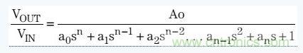 巴特沃茲濾波器傳輸函數(shù)包括所有極點,并且沒有零,其表達(dá)式如下: