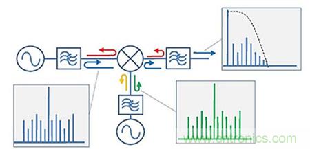 互調(diào)抑制一直是衡量混頻器設(shè)計(jì)的目標(biāo)之一?;诋?dāng)前半導(dǎo)體工業(yè)的發(fā)達(dá),我們可以通過利用高動(dòng)態(tài)范圍的場效應(yīng)管成功實(shí)現(xiàn)了不同水平的互調(diào)抑制。然而,即使最好的混頻器也會(huì)在它的每個(gè)端口產(chǎn)生一些互調(diào)產(chǎn)物,并且這些互調(diào)產(chǎn)物會(huì)成為影響到周邊射頻鏈路中的因素。當(dāng)傳統(tǒng)濾波器要濾除這些互調(diào)產(chǎn)物時(shí),他們會(huì)被完全反射回到混頻器,并與基波信號重新合成而產(chǎn)生大量的假信號。這些假信號會(huì)因?yàn)榭赡苈湓谒璧念l帶內(nèi)而通過濾波器輸出到中頻,進(jìn)而限制了整個(gè)系統(tǒng)的動(dòng)態(tài)范圍。