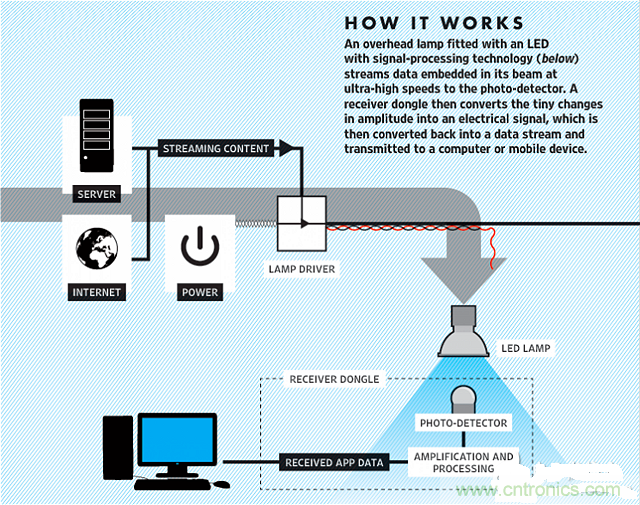 使用這種技術(shù)的LED燈泡不會出現(xiàn)視覺效果上的不同——光脈沖編碼的信息太微小,加上傳輸速度之快,肉眼是看不見的。此外,目前尚不清楚這種更快速的數(shù)據(jù)傳輸技術(shù)是否會增加LED燈和光學(xué)探測器的成本。