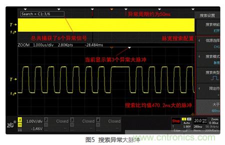 ZDS2000示波器提供了觸發(fā)、測量、搜索、FFT等多種強(qiáng)大功能,但異常信號的不確定性非常大,實(shí)際應(yīng)用中,還是應(yīng)視具體情況,靈活組合運(yùn)用,才能最大程度的提高工作效率。