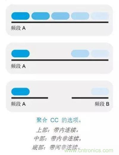 載波聚合有帶內(nèi)的載波聚合,帶內(nèi)又分成連續(xù)和非連續(xù),連續(xù)的是這兩個載波是緊靠在一塊的,非連續(xù)的是中間有隔斷,并不是連續(xù)的載波。帶間的載波聚合是指兩個不同頻段的載波,這得根據(jù)不同運(yùn)營商所應(yīng)用的頻譜來采用不同的載波聚合的方式,對射頻前端的設(shè)計(jì)要求差異也很大。