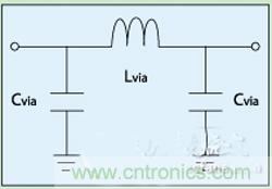 接地層確定后,將所有的信號地以最短的路徑連接到地層非常關(guān)鍵,通常用過孔將頂層的地線連接到地層,需要注意的是,過孔呈現(xiàn)為感性。圖3所示為過孔精確的電氣特性模型,其中Lvia為過孔電感,Cvia為過孔PCB焊盤的寄生電容。如果采用這里所討論的地線布局技術(shù),可以忽略寄生電容。一個1.6mm深、孔徑為0.2mm的過孔具有大約0.75nH的電感,在2.5GHz/5.0GHz WLAN波段的等效電抗大約為12Ω/24Ω。因此,一個接地過孔并不能夠為RF信號提供真正的接地,對于高品質(zhì)的電路板設計,應該在RF電路部分提供盡可能多的接地過孔,特別是對于通用的IC封裝中的裸露接地焊盤。不良的接地還會在接收前端或功率放大器部分產(chǎn)生有害的輻射,降低增益和噪聲系數(shù)指標。還需注意的是,接地焊盤的不良焊接會引發(fā)同樣的問題。除此之外,功率放大器的功耗也需要多個連接地層的過孔。