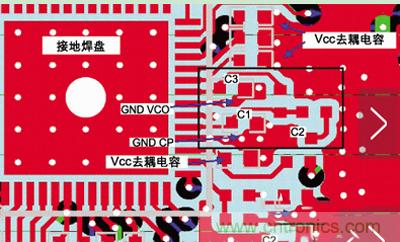 在本文的后面部分將會看到,PLL的實現(xiàn)在系統(tǒng)設計中總是面臨巨大挑戰(zhàn),要想獲得滿意的雜散特性必須有良好的地線布局。目前,IC設計中將所有的PLL和VCO都集成到了芯片內(nèi)部,大多數(shù)PLL都利用數(shù)字電流電荷泵輸出通過一個環(huán)路濾波器控制VCO。通常,需要用二階或三階的RC環(huán)路濾波器濾除電荷泵的數(shù)字脈沖電流,得到模擬控制電壓??拷姾杀幂敵龅膬蓚€電容必須直接與電荷泵電路的地連接。這樣,可以隔離地回路的脈沖電流通路,盡量減小LO中相應的雜散頻率。第三個電容(對于三階濾波器)應該直接與VCO的地層連接,以避免控制電壓隨數(shù)字電流浮動。如果違背這些原則,將會導致相當大的雜散成分。