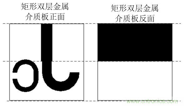由上節(jié)分析可知,C形環(huán)探測信號的耦合度受制于耦合間距。在間距達(dá)到1mm的情況下,在10GHz才達(dá)到-19.45dB。為了增強(qiáng)耦合度,本節(jié)在C形環(huán)旁邊添加了與它相反的C形環(huán),達(dá)到電磁耦合互補(bǔ),增加耦合度的作用。其結(jié)構(gòu)示意圖如下圖3所示。
