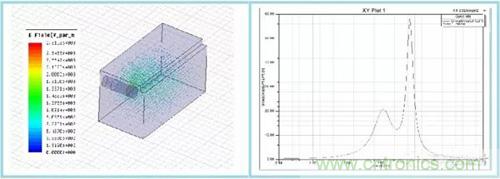 此處仿真時(shí),需要特別注意端口的簡歷方式,需要順著電場的方向。在計(jì)算耦合帶寬時(shí),能同時(shí)觀察到濾波器通帶諧波出現(xiàn)的頻率點(diǎn),通過合理選擇耦合窗口的大小,開口方向,盡量降低高次模諧波幅度。