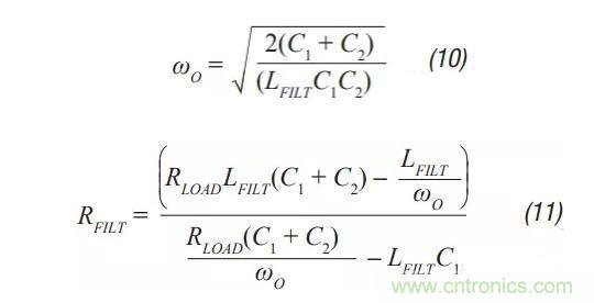 第1步:正如之前的拓?fù)?,選擇C1,使其等于沒有輸出濾波器時(shí)的情況。10 mV p-p至100 mV p-p是個(gè)不錯(cuò)的開始,具體取決于最終目標(biāo)輸出紋波。C1隨后可通過公式8計(jì)算得出。C1在這個(gè)拓?fù)渲锌梢圆捎帽戎巴負(fù)涓〉臄?shù)值,因?yàn)闉V波器效率更高。