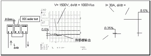 對階躍電流的超快速響應(yīng)時間對IGBT短路保護(hù)必不可少。HX系列可以以50A/ms以上的速度,準(zhǔn)確追蹤電流變化,對階躍電流的響應(yīng)最快為3ms。
