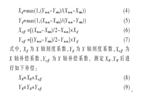 其中,(XR、YR)為經(jīng)過校正的值,將它們帶入式(3)就可以得到方位角。