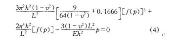 其中坐標(biāo)系是平面直角坐標(biāo)系,其原點(diǎn)是正方形薄膜中心,坐標(biāo)軸平行于薄膜的邊。其中h和L分別是薄膜的厚度和邊長。f(p)是一個(gè)關(guān)于薄膜絕對壓強(qiáng)的函數(shù)。f(p)由方程(4)決定,即