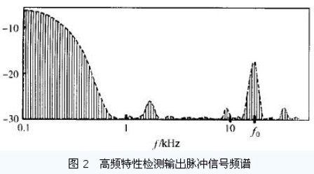 在該頻譜圖中, f 低于2 kHz 時的頻譜的形狀與原調制信號的頻譜的形狀相似Z 脈沖畸變引起的信號頻譜的變化主要表現(xiàn)是: 在3 kHz 到5MHz 頻段內會出現(xiàn)一個與駐波點位置密切相關的較大峰值.該峰值的頻率f0 除與駐波點位置有關外, 還與同軸電纜的品質、高低頻信號分離電路的特性等有關. 經大量的測試證明, 在對傳感器進行校正后, f只與駐波點位置(即同軸電纜受力位置) 有關, 且f與駐波點和高低頻信號分離電路之間的距離d 呈非線性關系.在1m < d < 1km 時, f2= K/d2+ P ,其中K 為與同軸電纜品質相關的常數, P 為與傳感器的電路相關的常數.