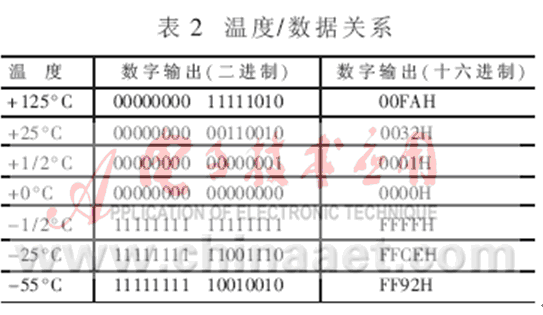 在實(shí)際應(yīng)用中,測量溫度往往在0°C以上,此時(shí)可只取16位二進(jìn)制溫度輸出的低8位,即1個(gè)字節(jié),這樣將使計(jì)算和編程工作更為便利。