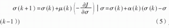 其中,μ(k)為學(xué)習(xí)率,α(k)為動(dòng)量因子,也稱為遺忘因子,又稱動(dòng)量項(xiàng)或阻尼項(xiàng)。將其稱為遺忘因子可從對于新舊信息的學(xué)習(xí)與遺忘的角度來理解;稱為動(dòng)量項(xiàng)或阻尼項(xiàng)是因?yàn)樵诰W(wǎng)絡(luò)的學(xué)習(xí)訓(xùn)練中,此項(xiàng)相當(dāng)于阻尼力,當(dāng)訓(xùn)練誤差迅速增大時(shí),它使網(wǎng)絡(luò)發(fā)散得越來越慢??傊?,它使網(wǎng)絡(luò)的變化趨于穩(wěn)定,有利于網(wǎng)絡(luò)的收斂。