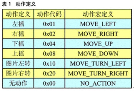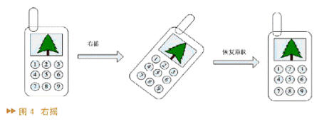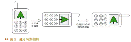 系統(tǒng)設計了六種動作,他們分別是左搖、右搖、下?lián)u、上搖、圖片左轉、圖片右轉。圖4中的圖形象地說明了其中的兩個動作,其它的動作與此類似。