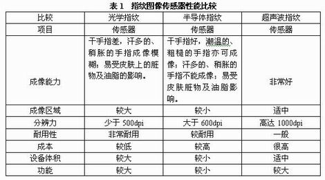 為克服物理方式的缺點,開發(fā)的光學傳感器、半導(dǎo)體傳感器、超聲波傳感器等對獲取高質(zhì)量指紋圖 像提供了良好的技術(shù)保障,具有很好實用價值。同時,更先進的指紋圖像傳感器亦在研發(fā),目的是獲得足夠的指紋細節(jié),并使指紋圖像達到較高分辨力,提高指紋識 別準確性、可靠性。本文主要介紹各種指紋圖像傳感器技術(shù)關(guān)鍵、性能特點,并簡要介紹其應(yīng)用情況及發(fā)展趨勢。