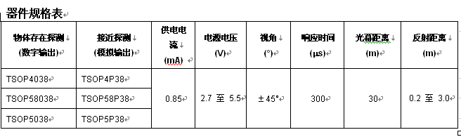 很多其他應(yīng)用要求反射傳感器不僅能夠探測(cè)是否有光,還要能通過測(cè)量反射信號(hào)的強(qiáng)弱程度判定物體的遠(yuǎn)近。除了不能采用固定的探測(cè)閾值,還需要來自傳感器的模擬信息。利用TSOP4P38、TSOP5P38和TSOP58P38紅外接近傳感器,可滿足這些要求。傳感器輸出脈沖的長度根據(jù)發(fā)射器信號(hào)做出響應(yīng),發(fā)射器信號(hào)會(huì)按照反射自被探測(cè)物體的光的數(shù)量成比例變化。對(duì)于近處的物體,輸出脈沖接近發(fā)射脈沖的100%,對(duì)于遠(yuǎn)處的物體,輸出脈沖會(huì)變得更短。