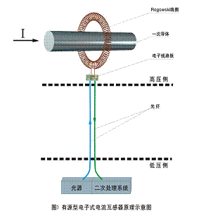 有源型電子式電流互感器特點是一次傳感器為空心線圈,高壓側電子器件需要由電源|穩(wěn)壓器供電方能工作。其原理如下圖所示: