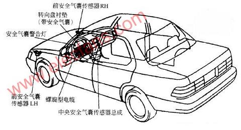 通常車(chē)型的安全氣囊系統(tǒng)結(jié)構(gòu)示意圖