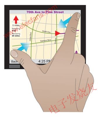 圖1-導(dǎo)航屏幕上的縮小手勢(shì)