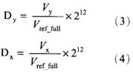 ADS7846內(nèi)部可以通過(guò)寄存器的設(shè)置A/D轉(zhuǎn)換器的分辨率設(shè)為8位或12位,在本系統(tǒng)中A/D轉(zhuǎn)換器的分辨率取12位。則P點(diǎn)的二進(jìn)制輸出代碼為: