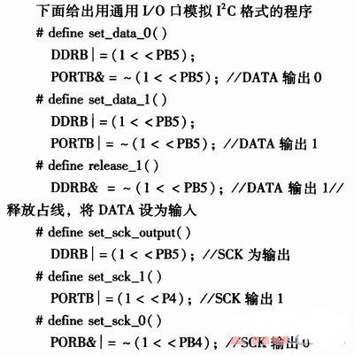 基于以上宏定義,可以方便地使SCK和SDA總線輸出持續(xù)一定時間的高電平或低電平,從而實現(xiàn)傳感器的讀寫。