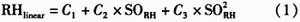 式中,RHlinear為經(jīng)過線性補償后的濕度值,SORH為相對濕度測量值,C1,C2和C3為線性補償系數(shù),取值如表3所示。