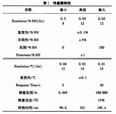 該傳感器集環(huán)境溫、濕度和光照度傳感器于一體,使測量系統(tǒng)的成本和體積大為降低,減少了系統(tǒng)設(shè)計的復(fù)雜性。