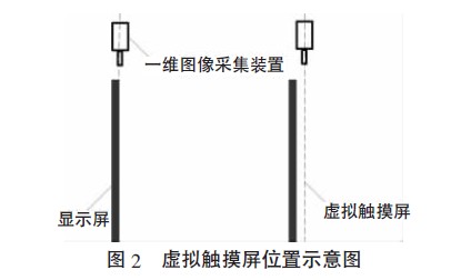 設(shè)計了一種虛擬觸摸屏系統(tǒng),其特色在于由圖像采集裝置獲取的一維圖像數(shù)據(jù)來確立用戶手指觸摸二維虛擬觸摸屏上的位置坐標(biāo)。前提是一維圖像采集裝置的安裝位置,它從根本上解決了大屏幕觸摸屏中人體遮擋手指無法識別的問題,且其進(jìn)行的是一維數(shù)據(jù)的處理,相比于二維圖像處理算法更加簡單。