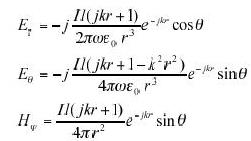 ,L1、L2為兩回路長(zhǎng)度,m0為真空磁導(dǎo)率,r為兩回路導(dǎo)線段距離。因此增大r和減小回路面積都能減小M12。 輻射干擾輻射干擾由天線發(fā)射,由于通電的導(dǎo)線和電纜可視為等效天線,因此汽車電子設(shè)備的線束輻射干擾非常嚴(yán)重。根據(jù)Maxwell方程,典型單極天線的輻射電磁場(chǎng)為