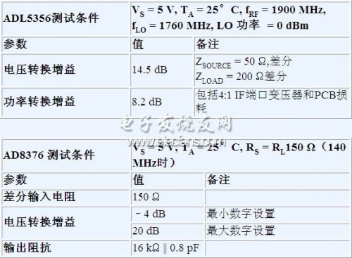 表3. ADL5356和AD8376接口和增益參數(shù)