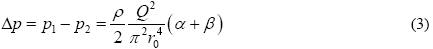 (1)對(duì)新型MEMS流量傳感器的結(jié)構(gòu)和理論壓差—流量模型進(jìn)行了介紹,從理論模型可知,對(duì)于某一半徑的管路,當(dāng)液壓油密度為定值時(shí),流量與壓力差之間的對(duì)應(yīng)關(guān)系取決與a和b的值,也就是異徑結(jié)構(gòu)的尺寸參數(shù),而與系統(tǒng)的靜壓力無關(guān)。α為流道1內(nèi)的擴(kuò)壓作用,β為流道2內(nèi)的壓縮作用,因此該式可以用來計(jì)算管內(nèi)的流量。