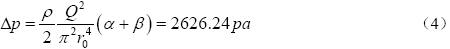 通過上式可以通過壓差來計(jì)算流量,為了平衡擴(kuò)張和壓縮作用以及盡量減少能量損失,當(dāng)θ=7°,φ=0.13,ζ=0.02,且流量Q為 61.1L/min,即在該管徑下流速為1m/s時(shí),對(duì)異徑管尺寸進(jìn)行優(yōu)化為:a=0.4r0,b=0.8r0,a=2.9264,b=3.1109,α+β=6.0373,α/β=0.9407