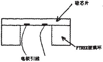 單一的硅片芯片只能作為一個檢測單元的一部分無法獨立完成信號的轉(zhuǎn)換,所以必須有特定的封裝使其具備壓力檢測的能力。將圖2中的硅片芯片與PYREX玻璃環(huán)靜電封接在一起。