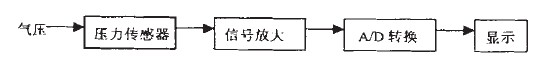 下面以測(cè)量輪胎氣壓為例詳細(xì)闡述氣壓傳感器在汽車輪胎方面的應(yīng)用。此種設(shè)計(jì)可做成一種便攜式的裝置,測(cè)量時(shí)將氣壓傳感器的表置于輪胎氣門嘴上,這時(shí)胎壓作用于傳感器的膜片上, 通過壓阻效應(yīng)和系列變換輸出微弱的電壓信號(hào),將電壓信號(hào)進(jìn)行相應(yīng)處理顯示電壓值。由此可知不同的氣壓對(duì)應(yīng)著不同的電壓值,即氣壓值和電壓值是一一對(duì)應(yīng)的,從而間接測(cè)量了氣壓值。胎壓測(cè)量電路方框圖如圖4所示。
