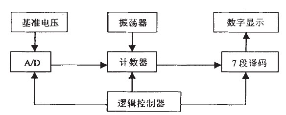 放大后的模擬電壓經(jīng)過A/D轉(zhuǎn)換器實(shí)現(xiàn)模擬量到數(shù)字量的轉(zhuǎn)換。A/D轉(zhuǎn)換結(jié)果通過計(jì)數(shù)譯碼電路變換成7段譯碼, 最后驅(qū)動(dòng)顯示出相應(yīng)的數(shù)值, 傳感器驅(qū)動(dòng)顯示電路方框圖如圖6所示。