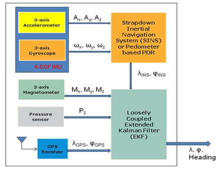 當(dāng)天線沒(méi)有被遮擋時(shí),現(xiàn)代的GPS接收器的絕對(duì)定位精度是3米到20米,這個(gè)參數(shù)不會(huì)在一段時(shí)期后發(fā)生漂移?;贛EMS傳感器的捷聯(lián)式慣性導(dǎo)航系統(tǒng)(SINS) 可在很短的時(shí)間內(nèi)提供精確的定位信息,但是,根據(jù)運(yùn)動(dòng)傳感器的性能,這種導(dǎo)航系統(tǒng)在使用一段時(shí)間后很快就會(huì)發(fā)生精度漂移現(xiàn)象。行人航位推算系統(tǒng)(PDR)是一個(gè)根據(jù)步長(zhǎng)和方位計(jì)算從室內(nèi)已知初始位置開始的行走距離的相對(duì)導(dǎo)航系統(tǒng),雖然定位精度不會(huì)隨時(shí)間推移而發(fā)生漂移,但是需要在受磁力干擾的環(huán)境內(nèi)保持航向精度,此外,GPS需要對(duì)步長(zhǎng)進(jìn)行校準(zhǔn),才能達(dá)到可以接受的定位精度。