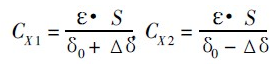 式中: ε為兩極板間介質(zhì)的介電常數(shù); S 為兩極板相對有效面積; δ為兩極板的間隙。