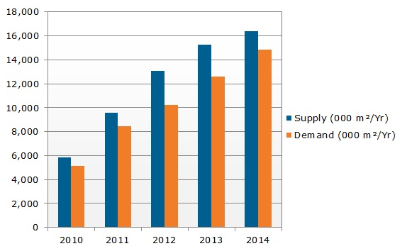 2010-2014年觸控感應(yīng)器的供需情況