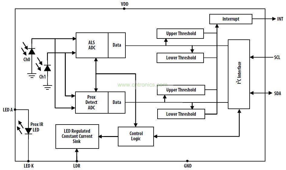 APDS-9901 在單個 8 引腳封裝內提供數(shù)字環(huán)境亮度和近接式傳感器 (ALS)、紅外 LED 和完整的近接式檢測系統(tǒng)。近接功能可進行 100 毫米即插即用檢測(無需擋風玻璃)因此減少了終端設備或子裝配的工廠校準需要。從明亮的陽光照射到黑暗的房間,近接檢測功能都能運作良好。寬動態(tài)范圍也允許,如手機的暗色玻璃后進行短距離檢測操作。此外,內部狀態(tài)機具有能將設備放置于 ALS 和近接測量之間的低功率模式的能力,提供極低的平均功耗。ALS 能在極低的光線條件或深色的面板后對亮度做出適光反應。
