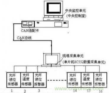 充分應(yīng)用CAN網(wǎng)絡(luò)和光纖傳感器的特點,將整個系統(tǒng)的擴展-遠程油庫油罐的液位、溫度信號實時監(jiān)測系統(tǒng)。