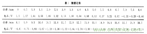 從圖7中PC機(jī)界面顯示位移一電壓坐標(biāo)圖,表1記錄的數(shù)據(jù)以及圖8在示波器上顯示的霍爾線性電路理想電壓一位移曲線圖相比較,可以發(fā)現(xiàn)由于傳感器實(shí)驗(yàn)臺(tái)受外界干擾等原因使得輸出信號(hào)輸出誤差在所難免,而且沒(méi)有電平轉(zhuǎn)換,使得VB繪圖中得到的數(shù)值存在負(fù)值;但是可以在圖中看到傳感器輸出的電壓值在正負(fù)之間有明顯的對(duì)稱性,與要求輸出的理想輸出信號(hào)波形相符合,證明本系統(tǒng)運(yùn)行良好,設(shè)計(jì)的非常成功。