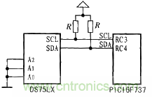 圖3:DS75LX與PIC單片機(jī)的硬件接口電路