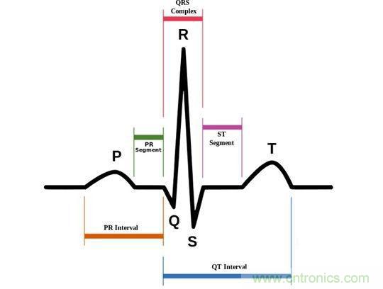 圖1:心電圖中的P-QRS-T波形圖