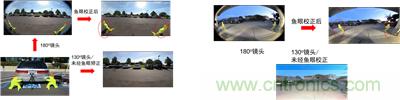 圖2:ASX344AT魚(yú)眼畸變校正示例(左:白天;右:夜間)
