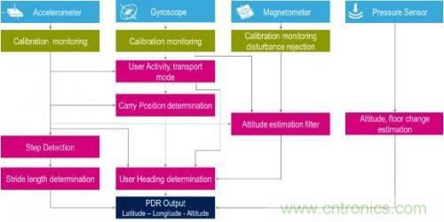 慣性傳感器、磁力計和壓力傳感器是航位推算應(yīng)用中必不可少的傳感器組件,用之可大幅提升導(dǎo)航性能,這些器件的功耗必須極低,這樣才能始終保持開啟模式并提供數(shù)據(jù)用于航位推算應(yīng)用。實現(xiàn)隨時隨地定位的目標離不開高品質(zhì)的MEMS傳感器和高性能的行人航位推算算法。本文主要討論各種行人航位推算算法上需要用到的傳感器組件的數(shù)學(xué)表述,以及可用性和可靠性更高的PDR行人航位推算算法的測試結(jié)果。