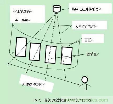 一旦入侵人進(jìn)入探測區(qū)域內(nèi),人體紅外輻射通過部分鏡而聚焦,從而被熱釋電元接收,但是兩片熱釋電元接收到的熱量不同,熱釋電也不同,不能抵消,經(jīng)信號處理而報(bào)警。
