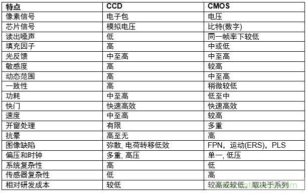 另一方面,CIS有較低采樣頻率,可以減小像素讀出所需要的帶寬,因而瞬時噪聲也較小??扉T會同時對陣列上的所有像素進(jìn)行曝光。但是CMOS傳感器采用這一方法的話,由于每像素需要額外的晶體管,反而占用更多像素空間。另外,CMOS每一像素?fù)碛幸粋€開環(huán)輸出放大器,而因著晶圓工藝的差異,每一放大器的補(bǔ)償和增益會有所變化,使高或暗的不均勻狀況都比CCD傳感器差。相對于同級的CCD傳感器,CMOS傳感器擁有較低的功耗,而芯片上其它電路的功耗也比CCD經(jīng)優(yōu)化模擬系統(tǒng)芯片匹配的解決方案來得低。取決于供貨量并考慮到CCD導(dǎo)入外部相關(guān)電路功能的成本,CMOS的系統(tǒng)成本也有可能低于CCD。表一總結(jié)了CCD和CMOS的特點,有些功能有利于一種或其他技術(shù),所以毋需完全分割整體性能或成本。不過,CMOS的真正優(yōu)勢是通過系統(tǒng)級芯片(system-on-chip)方式實現(xiàn)導(dǎo)入靈活性,以及其低功耗特點。