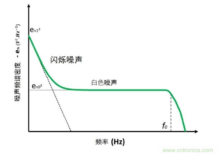 噪聲最由兩個因素造成:1/f閃爍噪聲和熱噪聲(見圖2)。閃爍噪聲是大自然中常有的噪聲,而它旳頻譜密度和地球自轉(zhuǎn)速度、海底水流、天氣以至氣候現(xiàn)象等活動相關(guān)。研究報告顯示普通蠟燭的閃爍速率是1/f 。在MOS器件和放大鏈各元素中,閃爍噪聲則是技術(shù)工藝誤差生成的缺陷,使電荷被困于柵極氧化物內(nèi)所造成的結(jié)果。電荷進(jìn)出這些“陷阱”,造成晶體管通道內(nèi)的電流不穩(wěn)定 [6],故又稱「隨機(jī)電報噪聲」(random telegraph noise,RTS)。利用洛倫茲數(shù)學(xué)模型(Lorentzian mathematical model) 可以形容每一個“陷阱”的共振行為,而模型的總和(即MOSFET通道表面范圍的所有“陷阱”總和)在1/f頻譜上展示時,會全完符合具體噪聲的頻譜密度。結(jié)果顯示,1/f波幅與MOSFET通道表面面積成反比──而不是完全直觀。