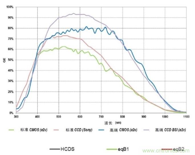 量子效率(Quantum efficiency ,QE) 是直接影響圖像傳感器光電性能的因素,因為光電轉(zhuǎn)換效率的任何損耗都會直接減低信噪比 (Signal-To-Noise- Ratio,SNR) 。它的影響是兩方面的,因為當(dāng)散粒噪聲(信號的平方根)是主要噪聲源時,QE不單是信噪比的被除數(shù)(信號),同時也是除數(shù)(噪聲)。在這一點之上,CCD和CMOS處于同一水平,可是CCD在QE改進(jìn)方面累積有多年的技術(shù)工藝優(yōu)化,而在CIS的QE改進(jìn)發(fā)展相對較遲?;诠栉镔|(zhì)的物理特性,較長的波長能穿透光敏轉(zhuǎn)換地帶,所以會使用厚的外延材料來增加上紅色和近紅外線波長的QE。根據(jù)比爾朗伯定律(Beer-Lambert law),被吸收的能量是與介質(zhì)的厚度成指數(shù)關(guān)係。高端應(yīng)用的 CCD 利用較厚的硅物質(zhì)和背照(back side illumination ,BSI)工藝以恢復(fù)高寬帶QE和近紅外線(near infrared ,NIR)敏感度,因而擁有優(yōu)勢。